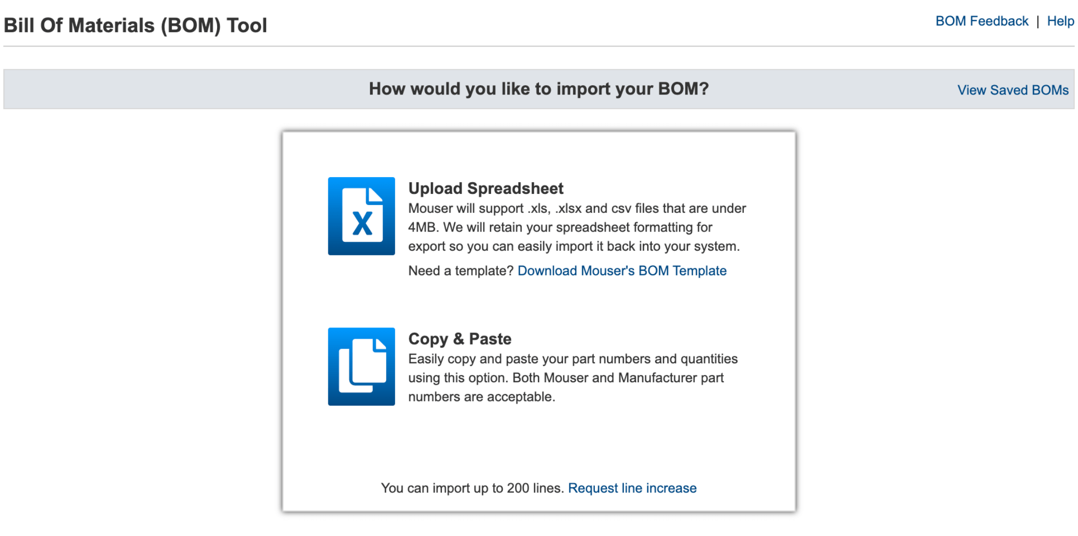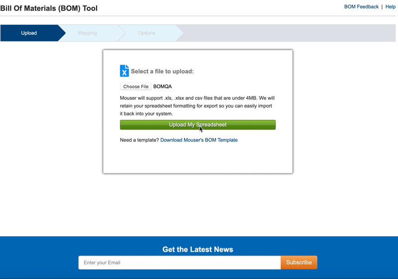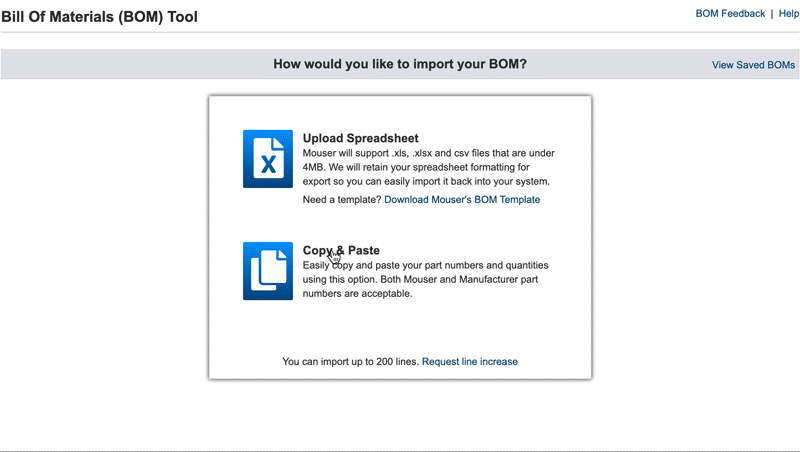 Mouser's BOM Tool allows you to import your data in two ways: